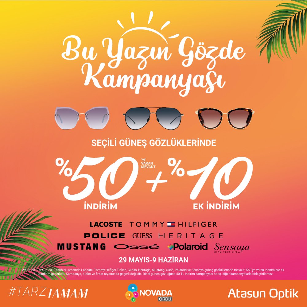 Novada Ordu On Twitter 29 Mayis 9 Haziran 2019 Tarihleri Arasinda Yazin Gozde Kampanyasi Atasun Optik Ten Secili Gunes Gozluklerinde 50 Ye Varan Mevcut Indirimlere Ek 10 Indirim Ordunovadaavm Atasun Novadaavm Avm Moda