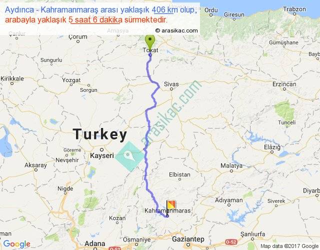 Aydinca Kahramanmaras Arasi Kac Km Saat