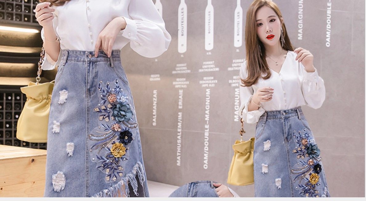 Satin Al Yeni Kot Etek Orta Boy Kadin Kore Uc Boyutlu Cicek Sacak Deligi Moda Duzensiz Etek 2020 Bahar Tl297 34 Dhgate Comda