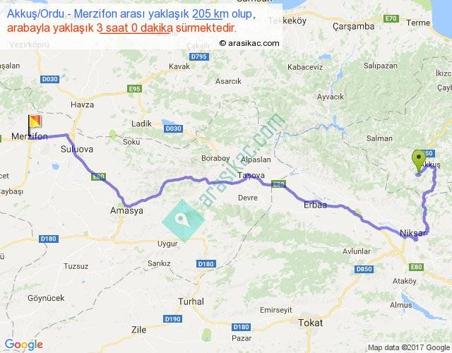 Akkus Ordu Merzifon Arasi Kac Km Saat