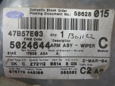 Ford Orion Escort 95 01 Rear Wiper Arm Assy Part No 5024644 Ebay