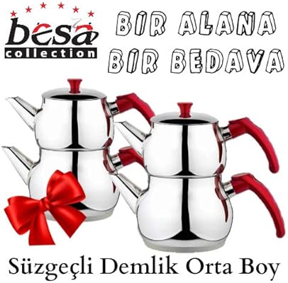 Besa Caydanlik Celik Kirmizi Kulp Aile Boy Suzgecli Demlik Trendyol