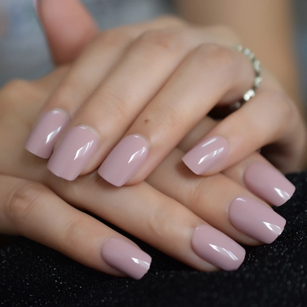 Basit Gunluk Sahte Tirnak Kare Puruzsuz Ciplak Pembe Parmak Civi Orta Parlak Manikur Aksesuarlari 24 Adet Aliexpress