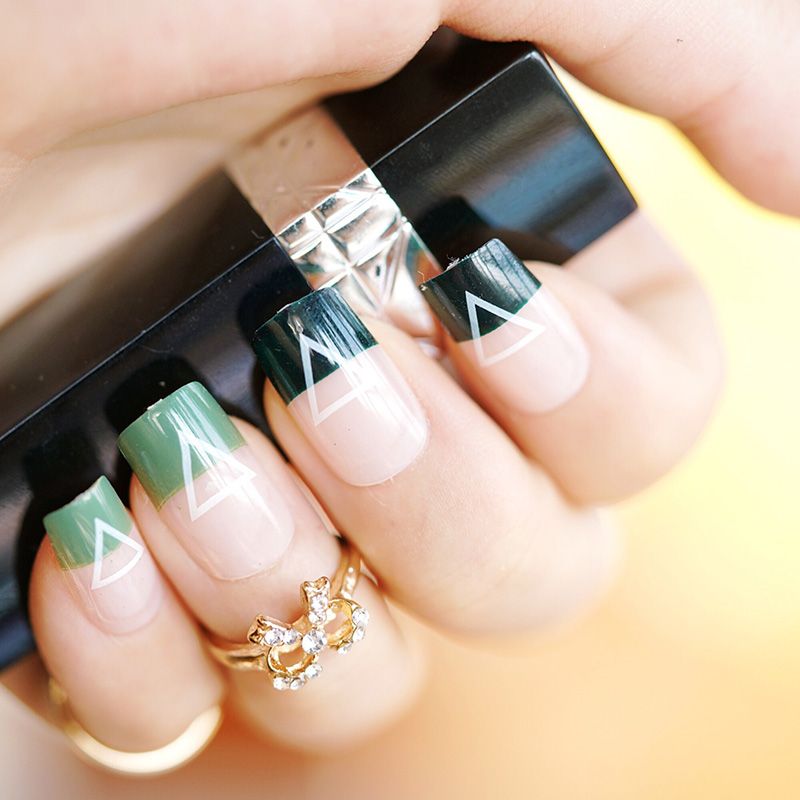 Satin Al Derin Sig Yesil Ucgen Desen Tasarimi Sahte Tirnak Kare Kafa Orta Boy Festivali Giyilebilir Tam Kapak Sahte Tirnak Uclari Tl73 72 Dhgate Comda