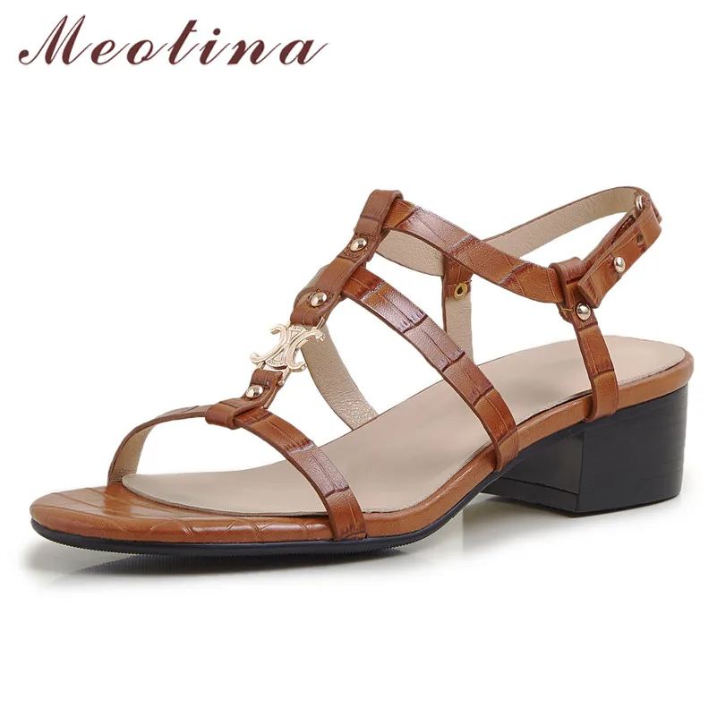 Meotina Percin Dogal Hakiki Deri Orta Boy Topuklu Sandalet T Kayisi Kalin Topuk Kadin Ayakkabisi Toka Kare Ayak Bayanlar Sandalet Yaz Orta Topuklu Aliexpress