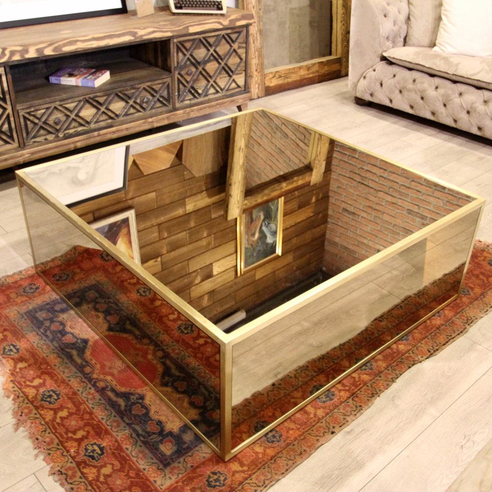 Szn Wood Orta Sehpa Cube Pirinc Eskitme Ayna Uclu 110 X 110 X 40 Cm