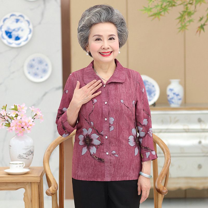 Orta Yas Eski Anne Baski Uzun Kollu Ust Bahar Sonbahar Arti Boyutu 4xl Kadin Eglence Dugme Hirka Bluz Buyukanne Gomlek W706 Bluzlar Ve Gomlekler Aliexpress