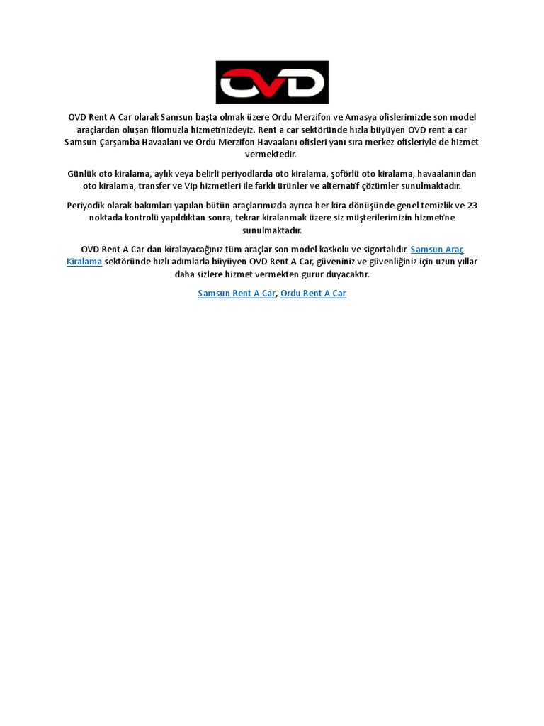 Samsun Rent A Car Samsun Ovd Arac Kiralama Filo Oto Kiralama