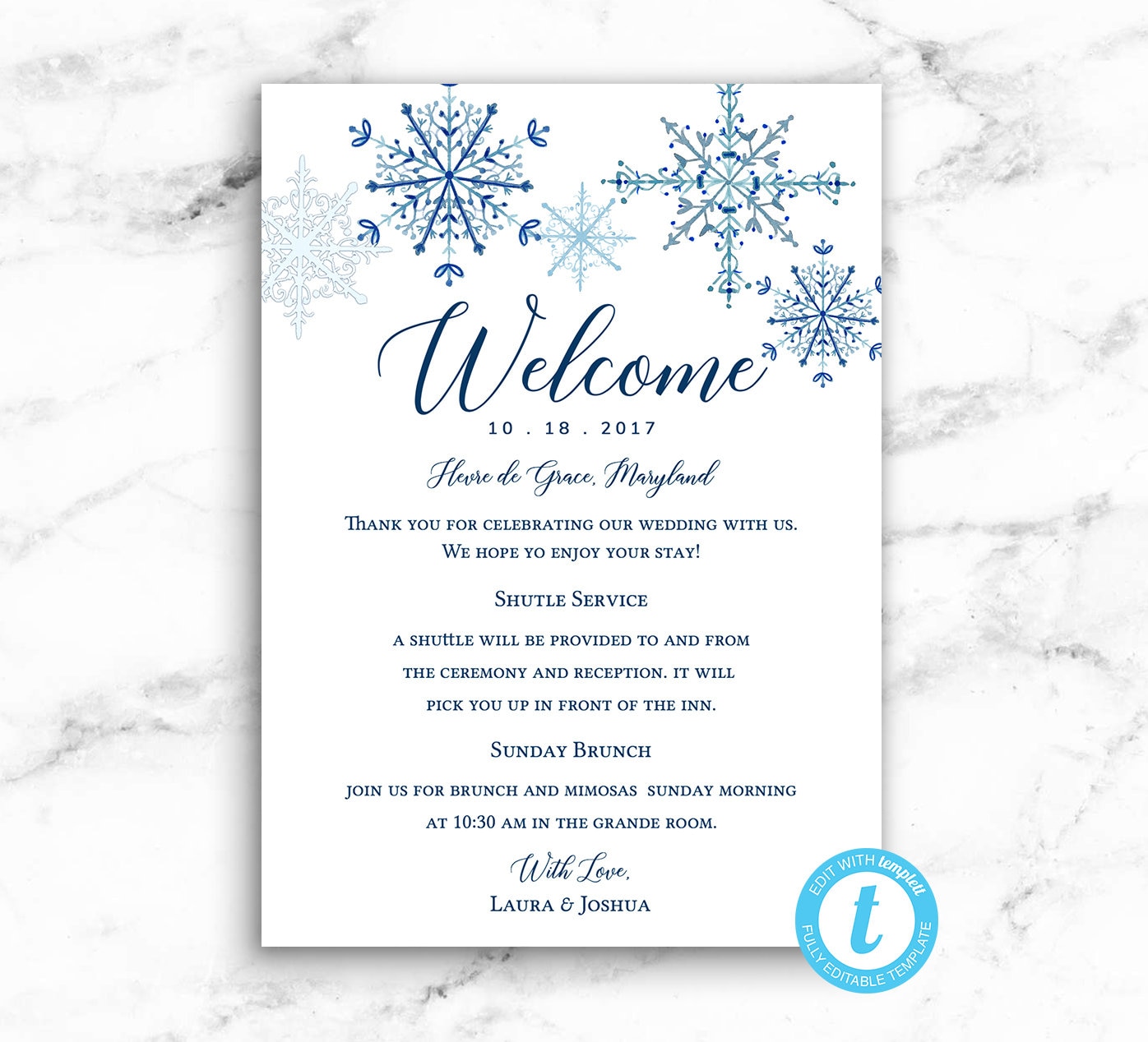Wedding Hotel Bag Welcome Card Winter Snowflake Editable Instant Digital Download Pdf Or Jpeg Download