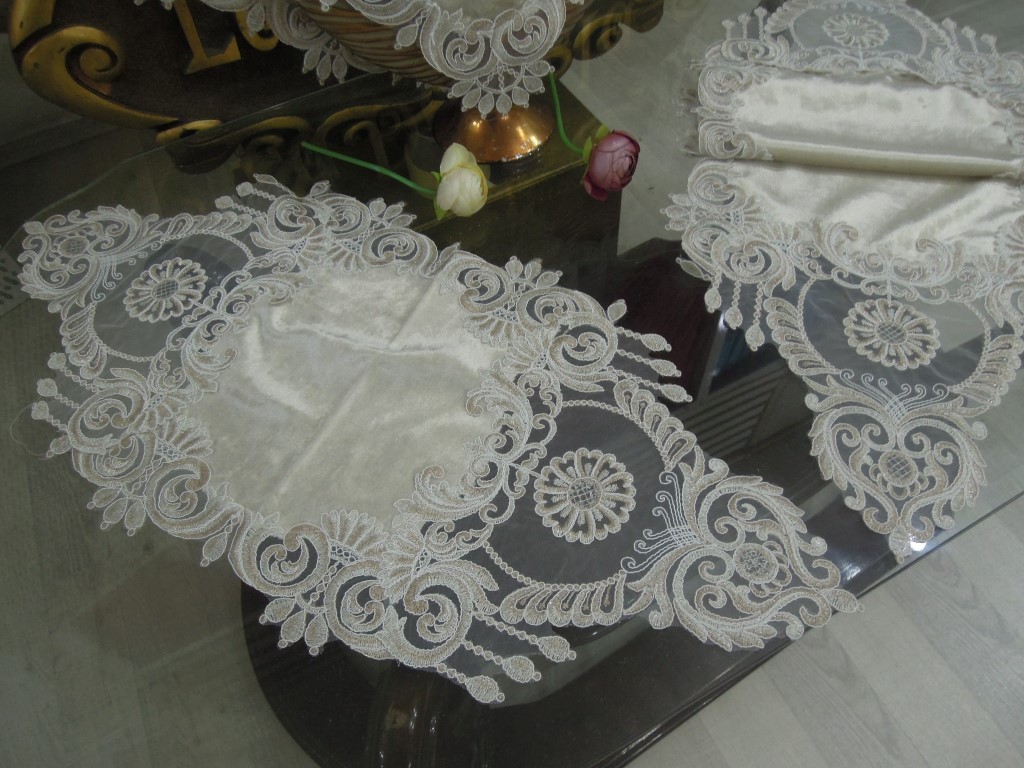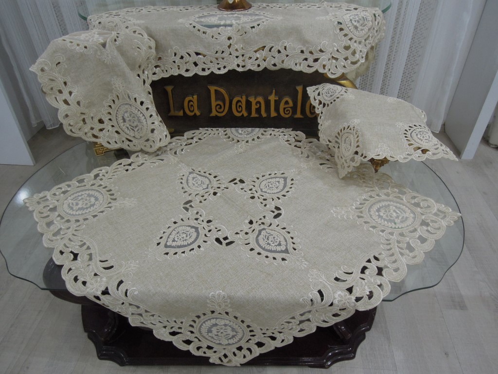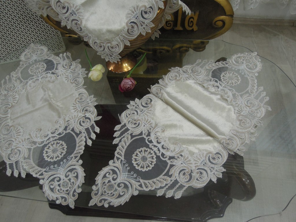 Igneoyali Dantel Montajli Salon Ortu Takimi Masa Ortusu Fiskos Ceyiz